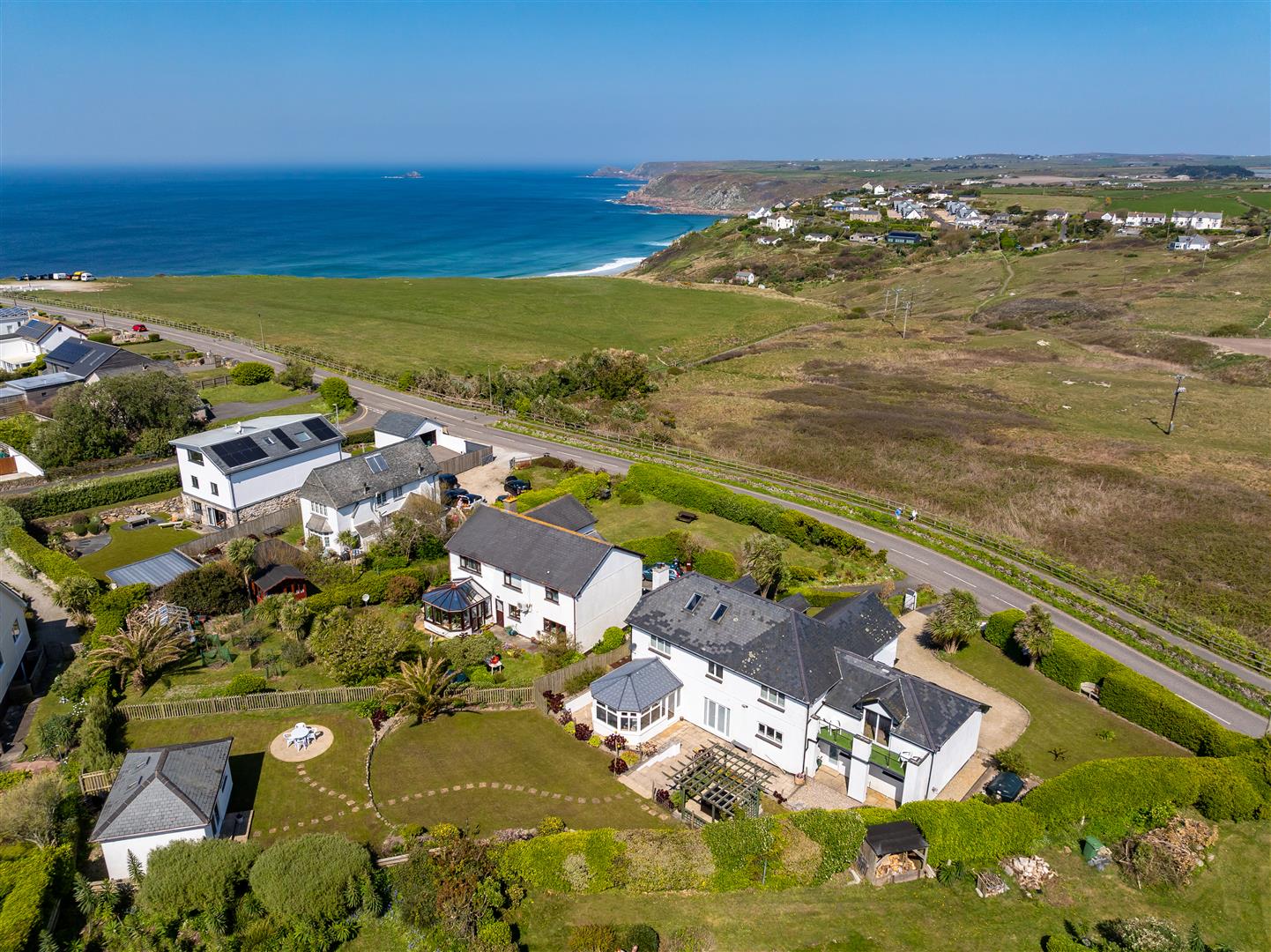 An exceptionally well-proportioned and beautifully presented modern residence enjoying far-reaching coastal views, set within one of West Cornwall’s most sought-after villages.