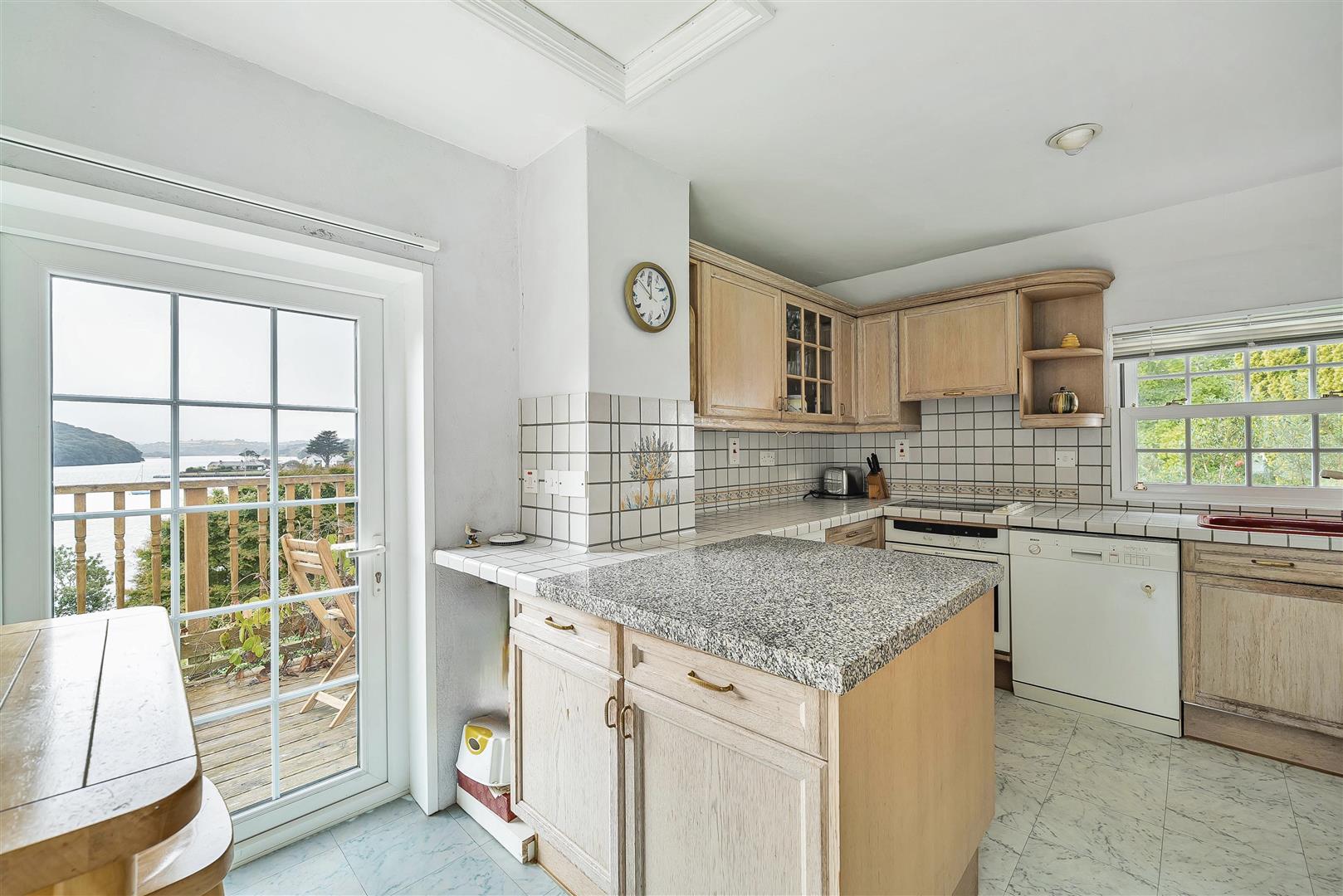 Arranged over two floors, the house opens to a welcoming hallway leading into a dining room and a well-appointed kitchen, both with stunning creek views. A doorway opens onto a balcony—ideal for morning coffee or evening sundowners. A utility room with pantry is positioned conveniently nearby. Also on this level is the principal bedroom suite with glorious water views and an en suite, along with a versatile fourth bedroom or study.The lower ground floor centres around a cosy living room with a wood burner, flowing into a conservatory that opens onto the garden. Two further bedrooms are located here—one with en suite and fitted wardrobes—plus an additional shower room and a small wine store.