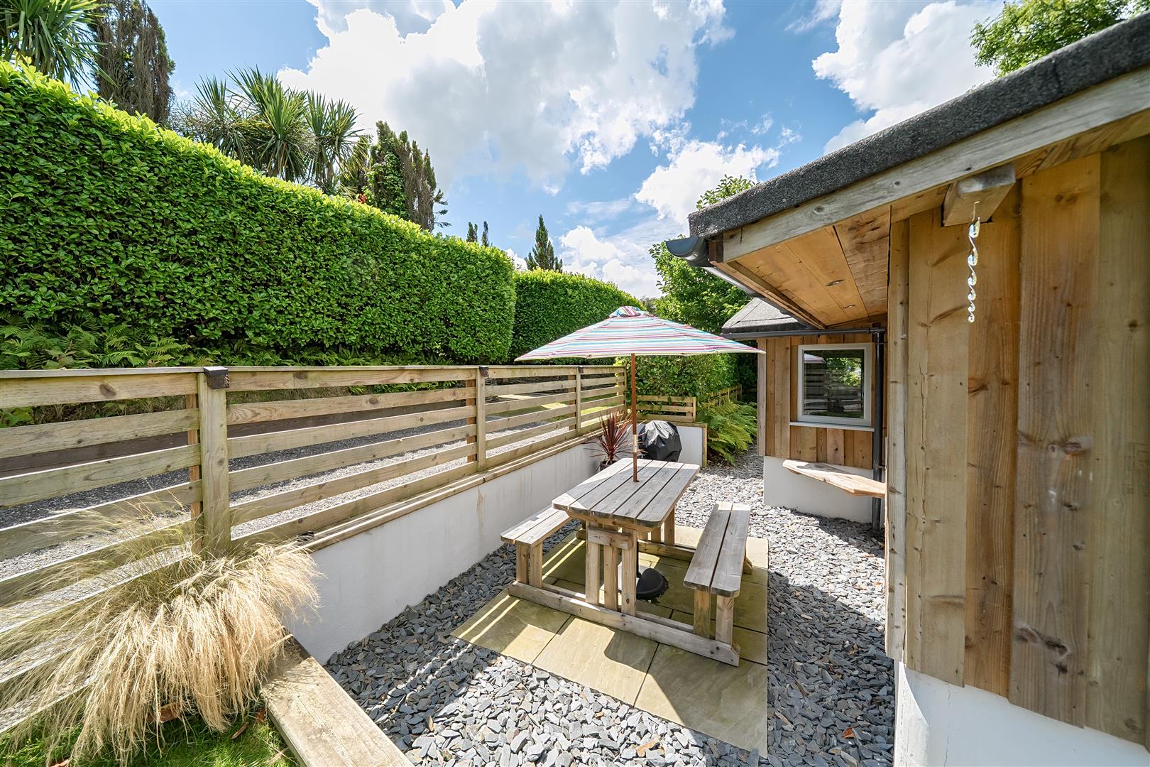 In addition, there is a further well-appointed summerhouse nestled within the garden, offering an ideal space for outdoor dining or entertaining during the warmer months. Attached to this is a versatile store room or workshop, which currently houses the equipment used in the running of 'The Stables' annexe holiday let. This setup ensures a practical and efficient solution for the maintenance and management of the annexe, while seamlessly integrating with the overall charm and functionality of the grounds.
