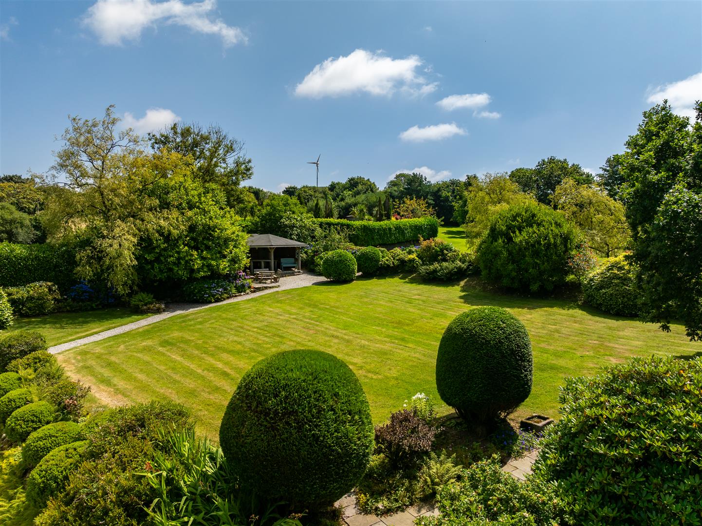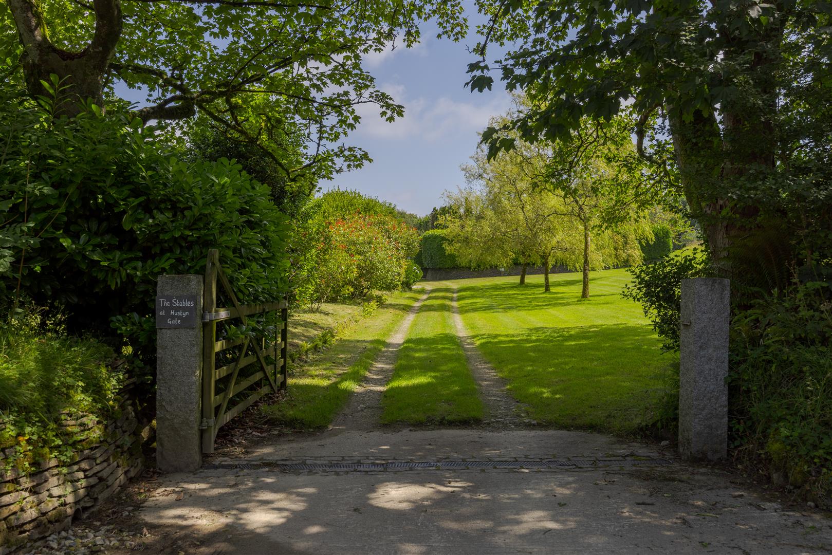 The beautifully landscaped grounds of Hustyn Gate extend to approximately 2.3 acres and are undoubtedly one of the property’s most captivating features. Thoughtfully designed and meticulously maintained, the gardens offer a harmonious blend of formal and informal elements, including expansive gently sloping lawns, mature trees and planting, and a series of attractive terraces perfectly positioned to capture the sun throughout the day. These various outdoor spaces provide ideal settings for relaxation, entertaining, or simply enjoying the tranquil surroundings.