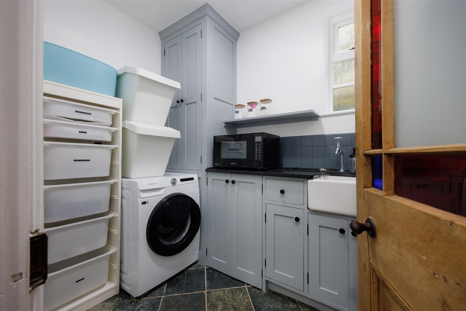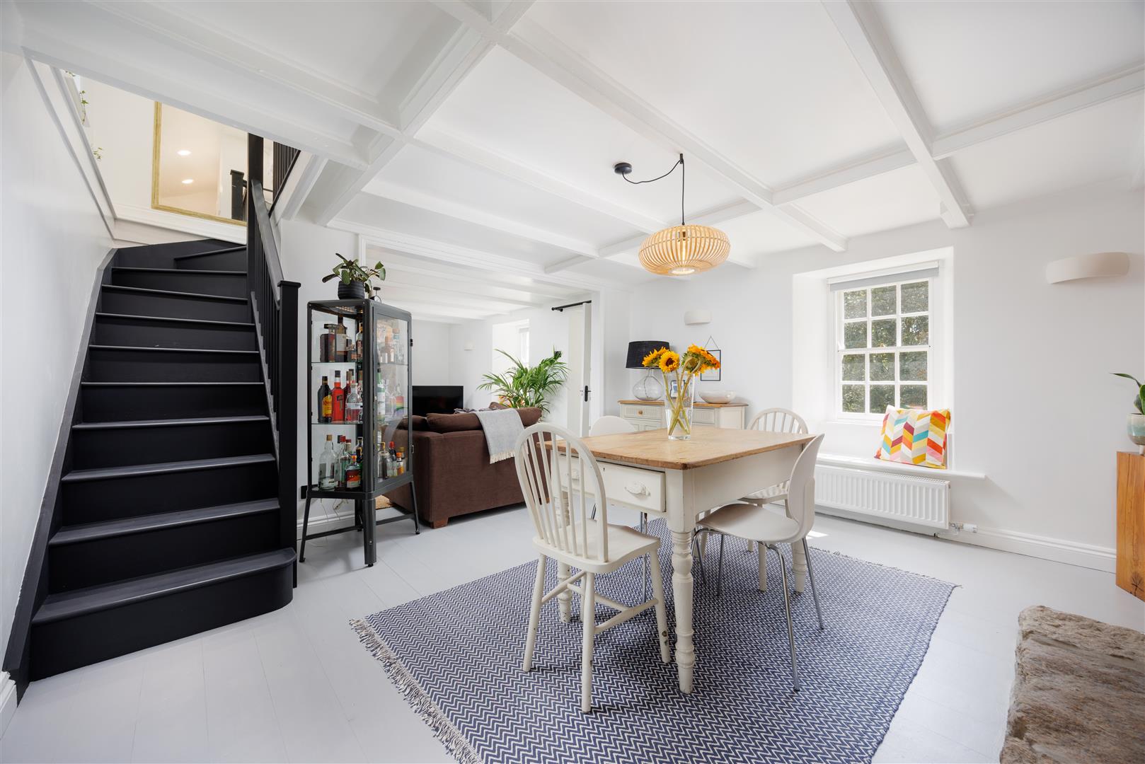 Ennis Cottage has been lovingly and sympathetically updated by the current owners to provide stylish, light-filled, and modern accommodation, whilst retaining the unique character and charm the cottage enjoys. This is immediately evident in the spacious and bright living/dining room with two feature inglenook fireplaces, one with a statement Dik Geurts wood-burning stove, complementing the contemporary styling and décor. Adjacent to this is the kitchen/breakfast room where modern shaker-style units contrast beautifully with the traditional flagstone flooring and sash windows. Beyond the kitchen lies a beautiful garden room which is a valuable additional reception space offering direct access to the garden. A separate utility room and a convenient WC complete the ground floor.