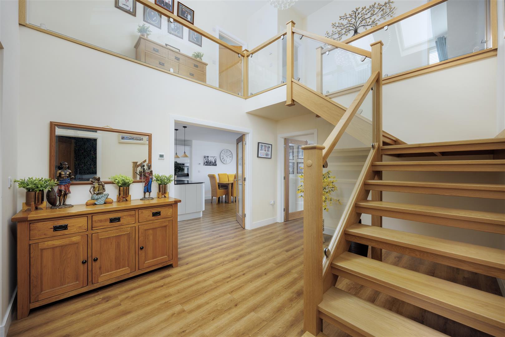 Upstairs, the galleried landing gives access to three bedroom. The principal suite is a luxurious retreat, featuring the stunning views, a large walk-in dressing room, and an elegant en suite shower room.