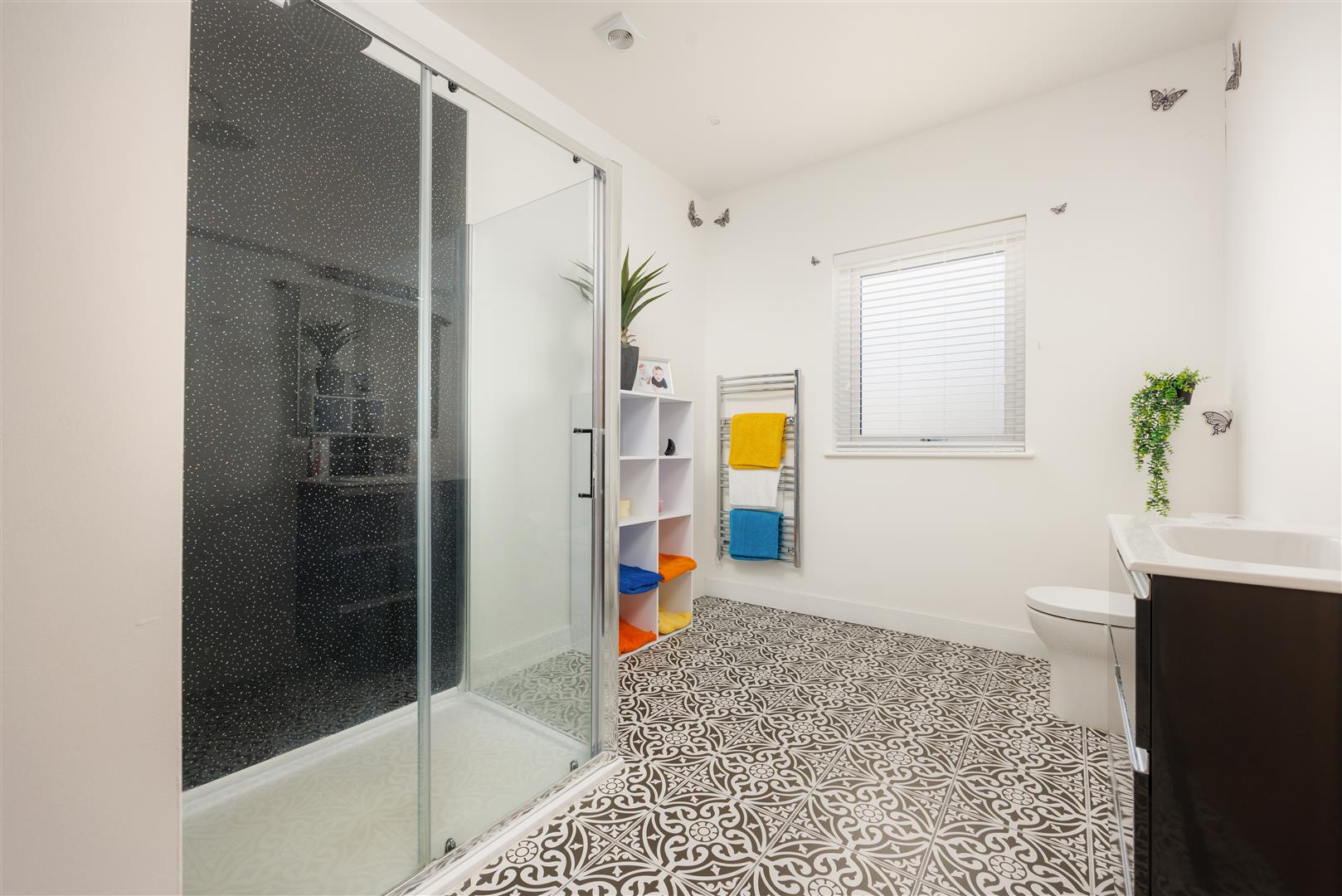 The second bedroom is also a generously proportioned double enjoying the views, with a walk-in wardrobe and en suite shower room. The third bedroom also enjoys southerly views and is served by the well-appointed family bathroom, accessed from the landing. A door within the family bathroom opens to a walk-in plant room housing the hot water tank and providing additional storage.