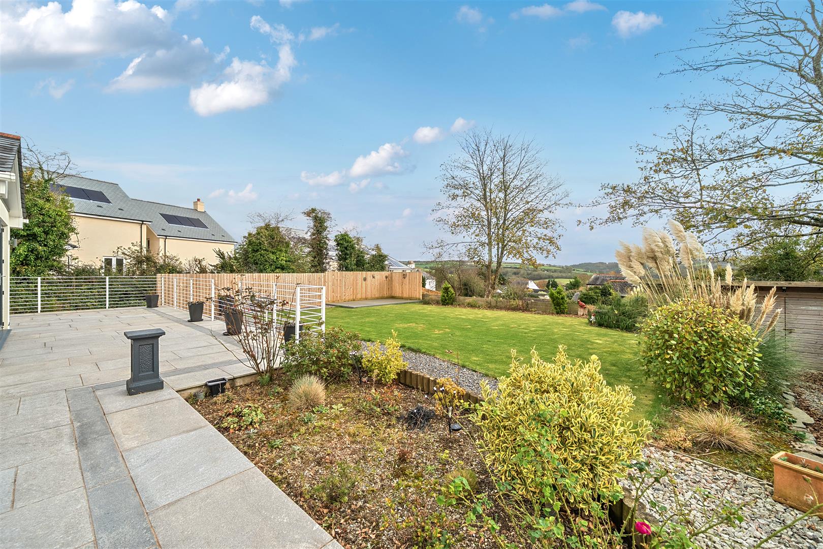 The landscaped rear garden is a standout feature of the property. A generous full width south-facing terrace is ideal for alfresco dining and entertaining, as well as leading down a short flight of steps to a lower level lawn with pathways and attractive planting. There is a decked area to the side, enjoying the more westerly light. To the front is a wide tarmac driveway that offers ample parking and turning space, as well as leading to the integral garage. Twelve photovoltaic roof panels are situated on the southerly roof, enhancing the property’s energy efficiency.