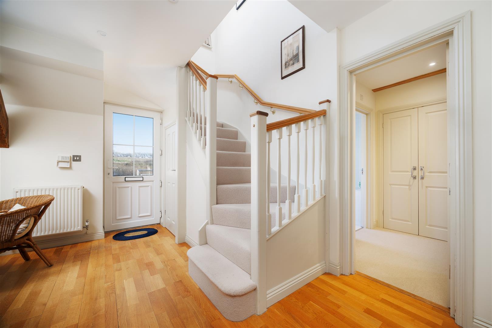 Accessed via a private driveway, Heligan’s gated and private walled garden provide a serene and secure setting. The property features a generous parking space and a well-proportioned garden with a level lawn and a paved terrace — perfect for evening drinks or summer barbecues. A further terrace at the top of the external steps offers a tranquil, elevated spot for morning coffee, soaking in the rural panorama to the rear. Further visitor parking is available to the rear of the development.