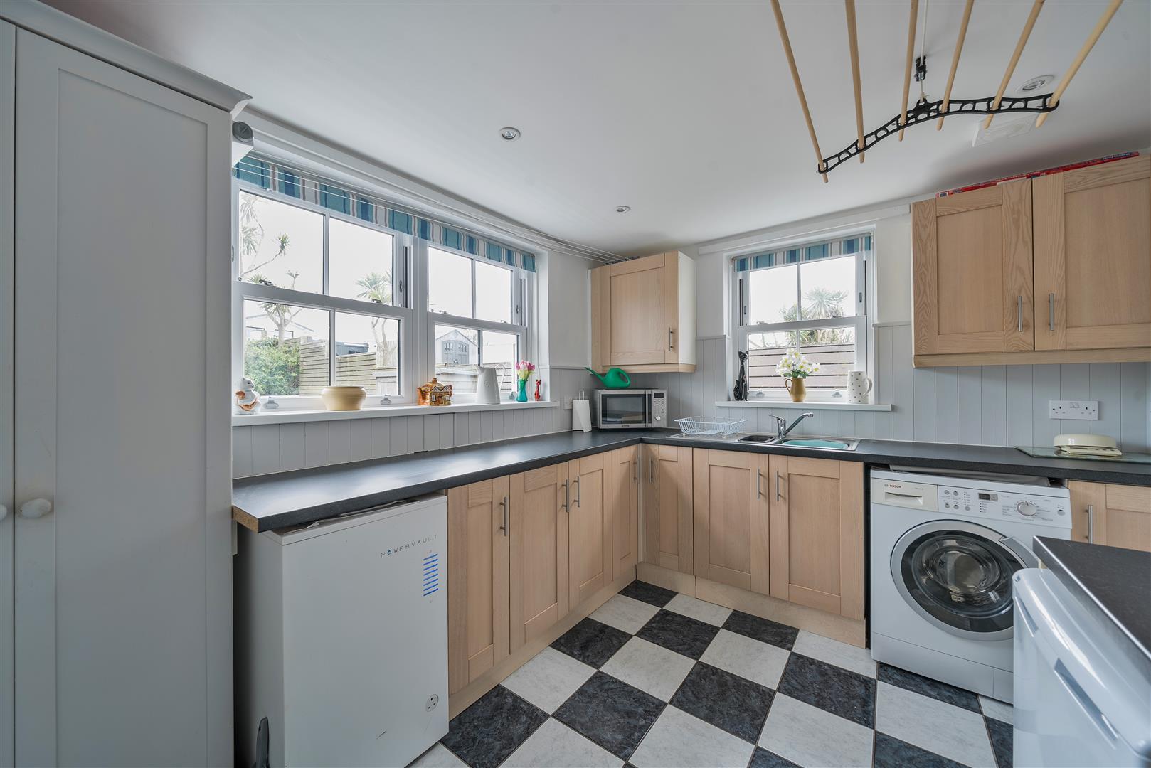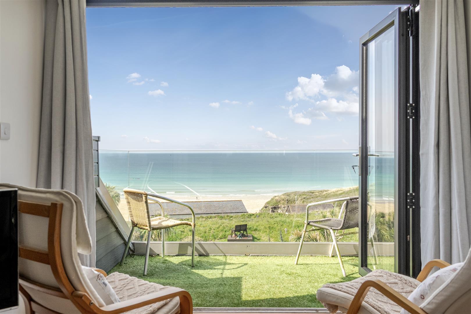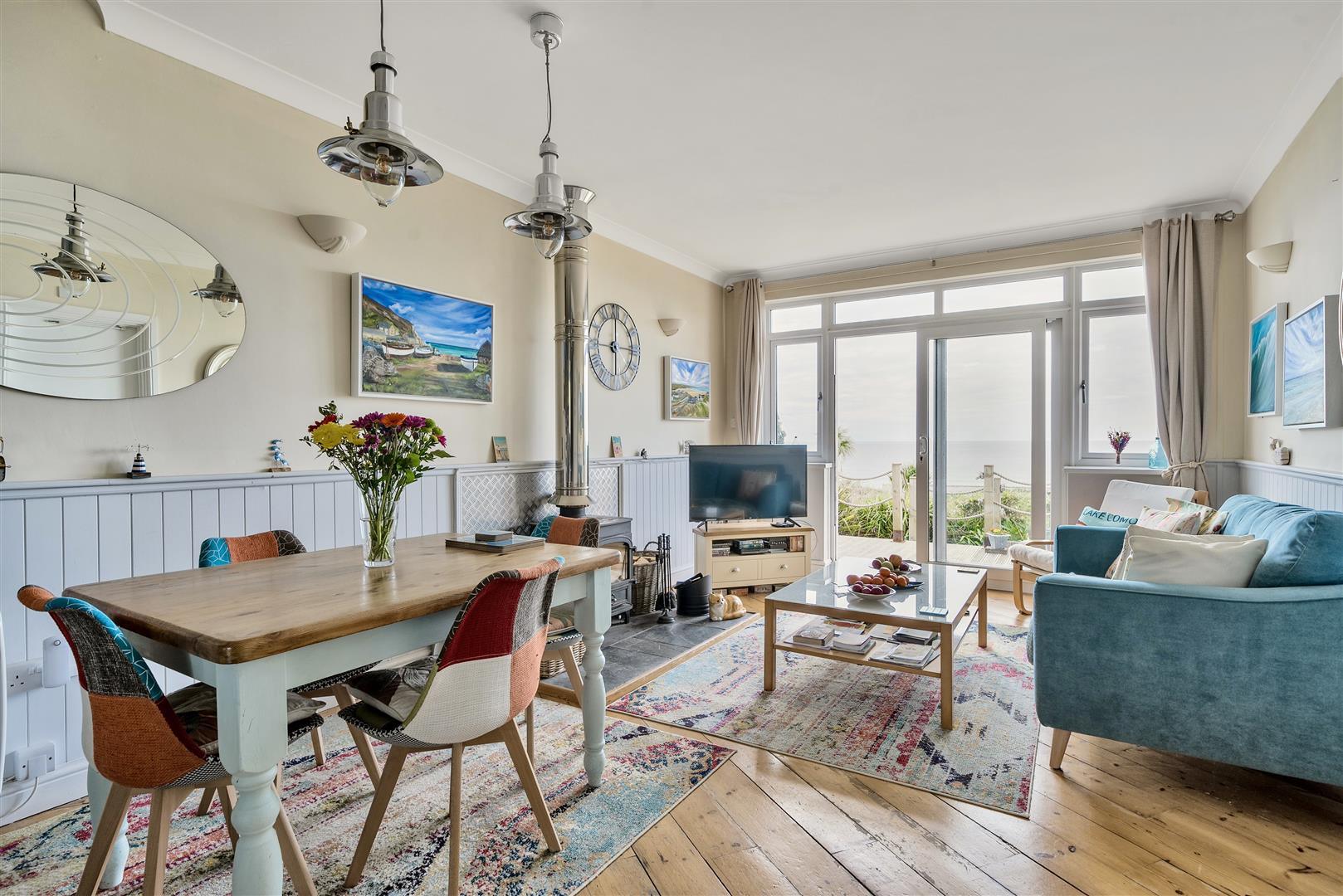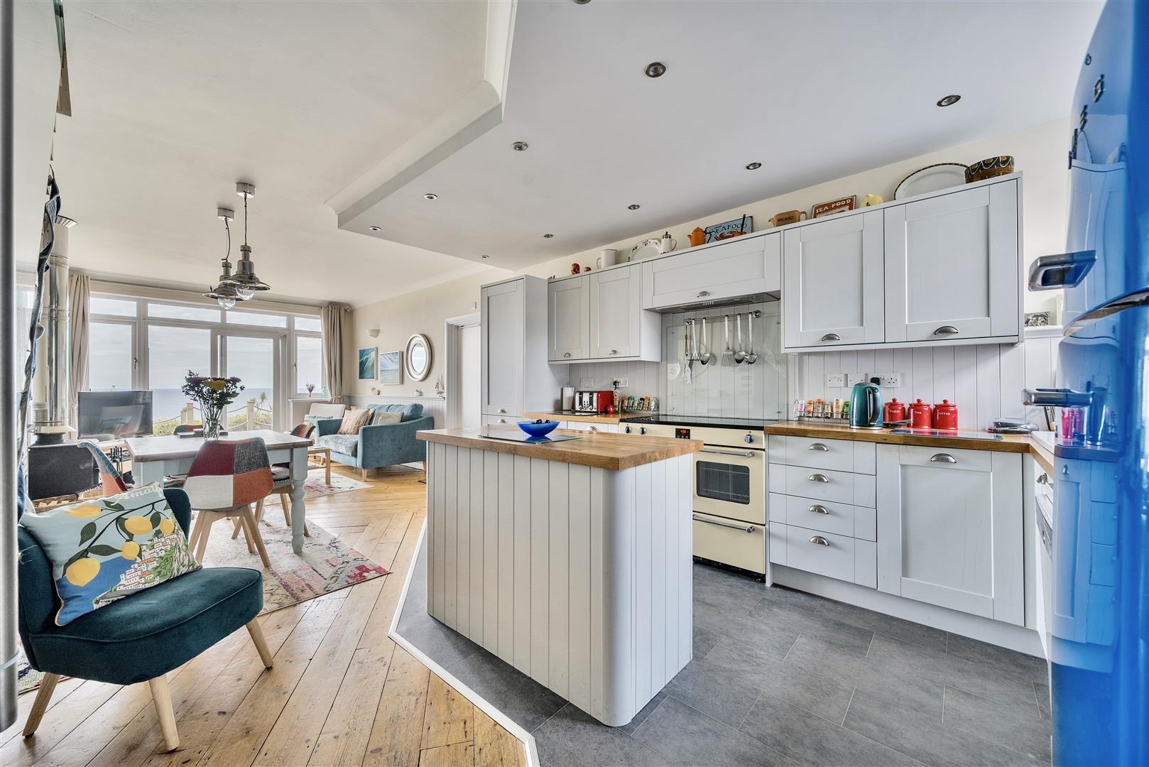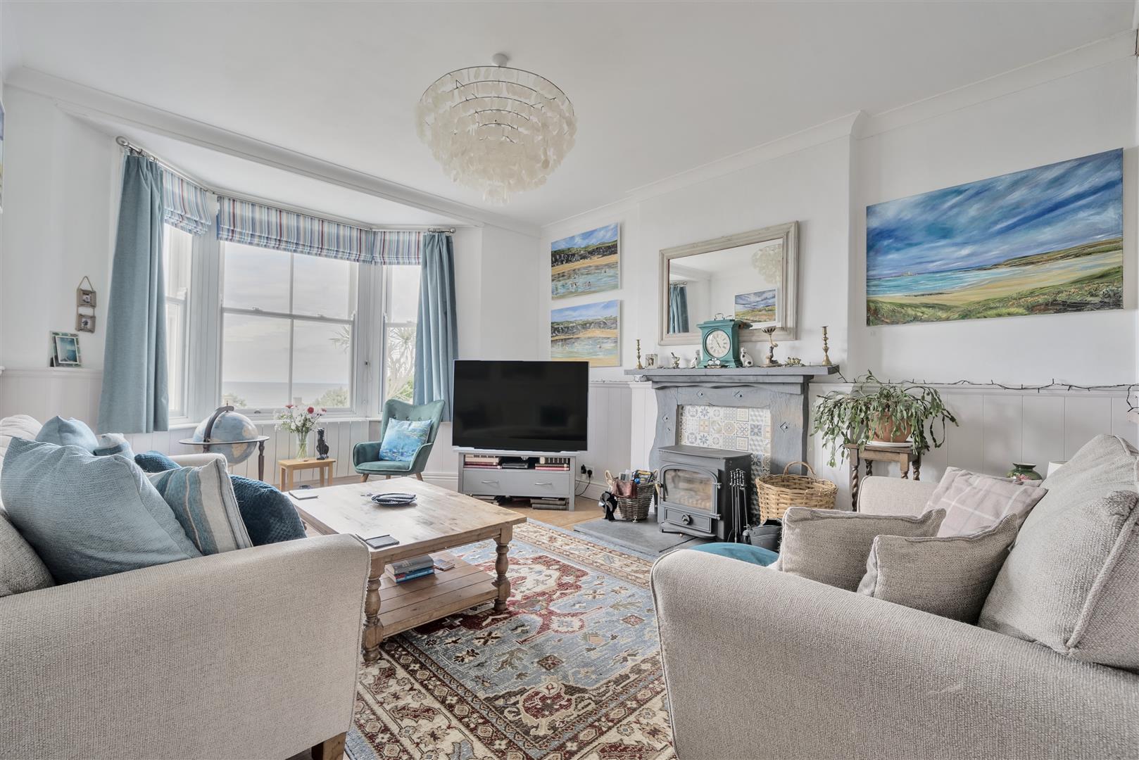 The westerly-facing seaward gardens and decked terrace create a truly special setting, with sweeping coastal views, lawned areas for relaxation and recreation, and a private gate leading directly to the beach