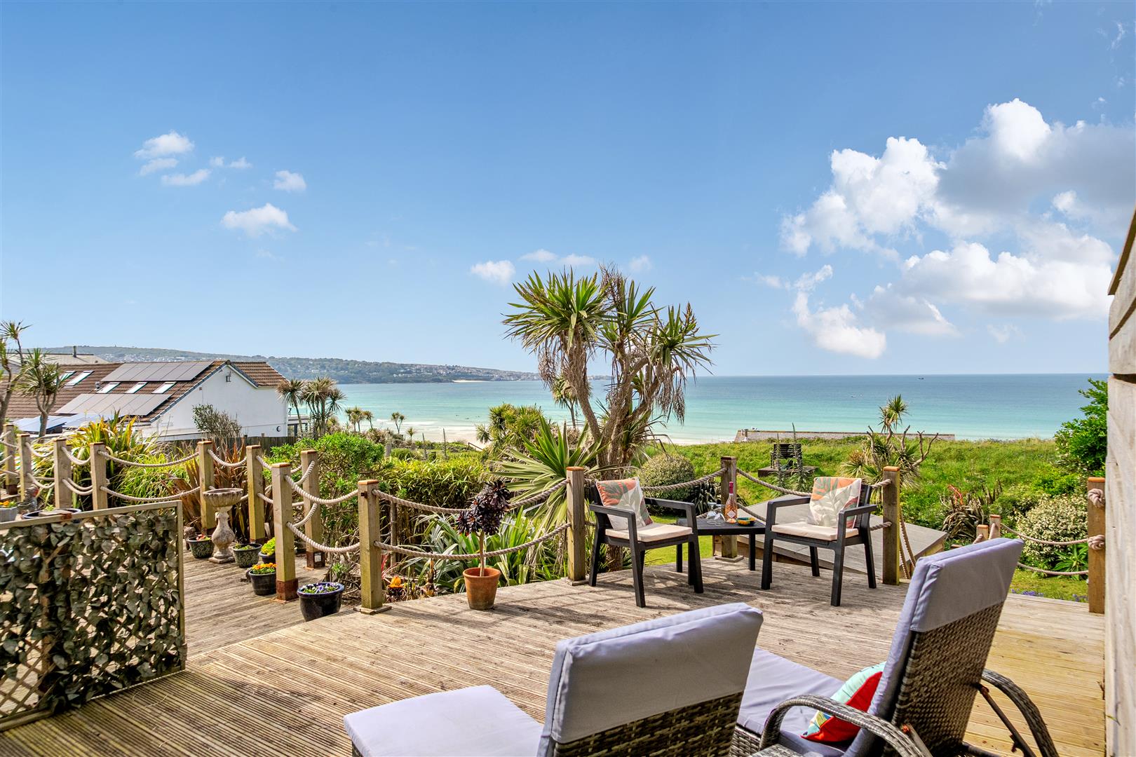 A charming coastal residence with fantastic panoramic views across St Ives Bay, offering flexible spacious accommodation with 4 bedrooms incorporating a self contained guest suite set in landscaped gardens with access to the beach.