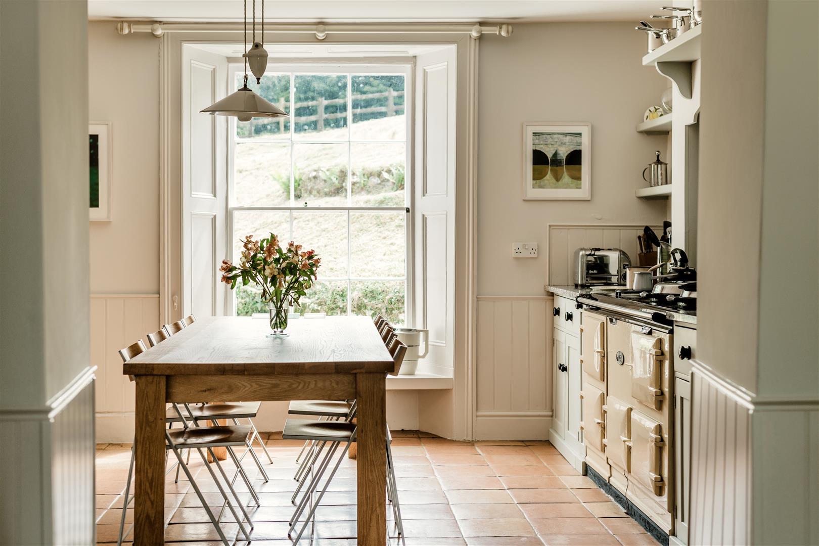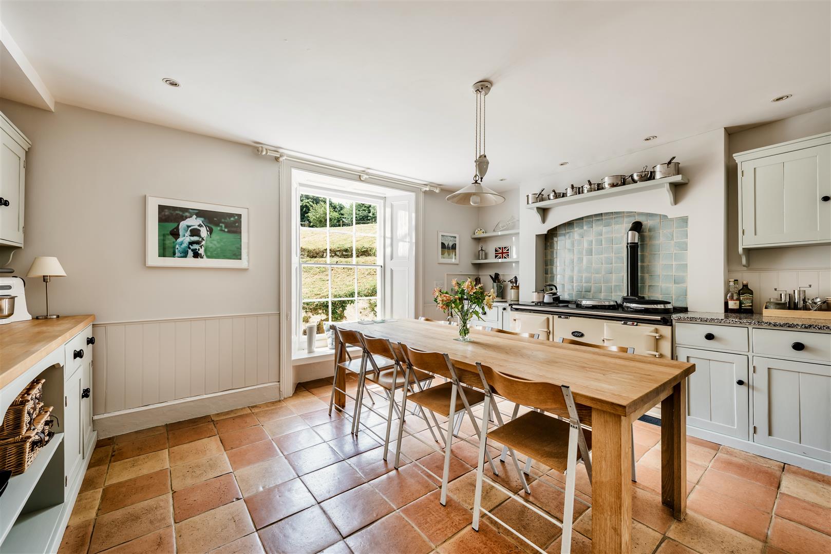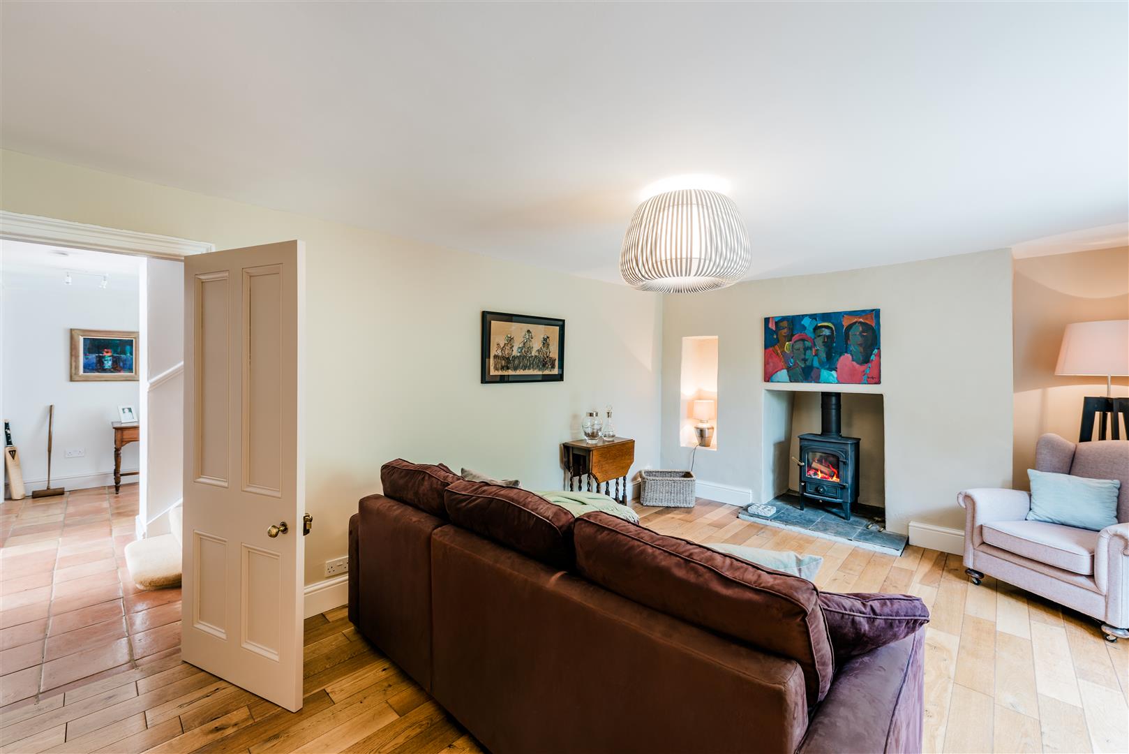 Entering the property, a welcoming hallway provides an excellent introduction to the home and leads through to the charming kitchen and breakfast area, where a traditional Aga forms the heart of the house. The reception rooms are well proportioned and full of character, including a dual-aspect drawing room and a cosy sitting room, both featuring wood-burning stoves that create warm and inviting spaces for relaxation.
