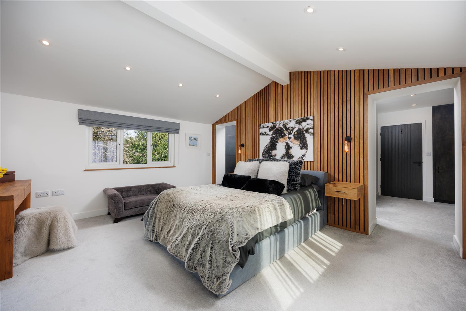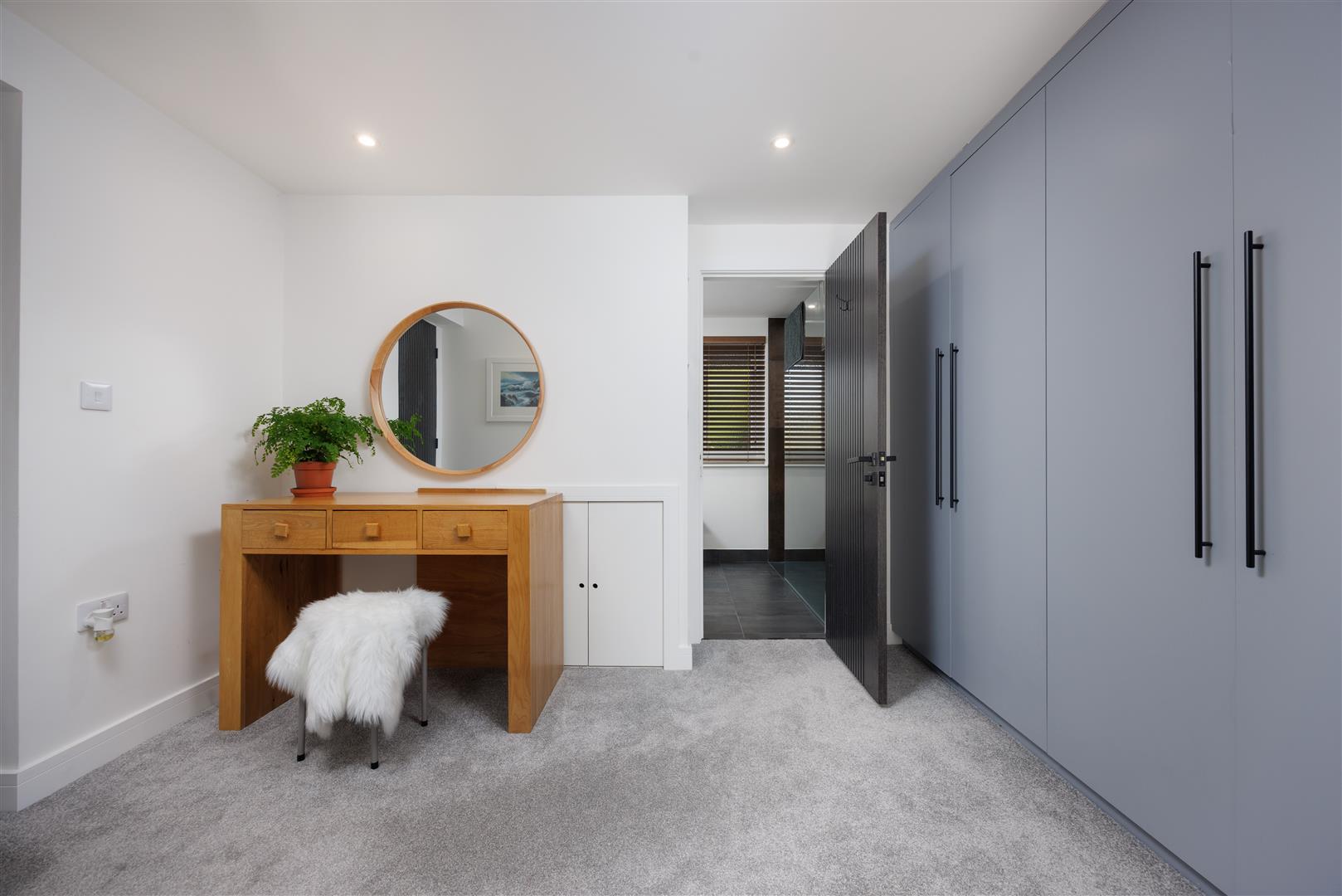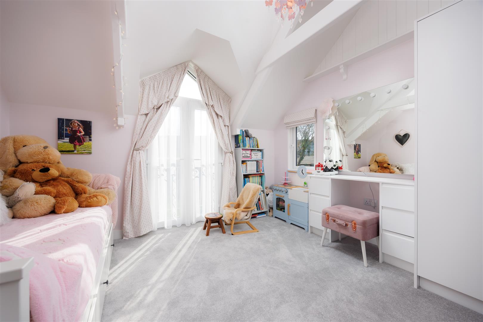 Upstairs, the bedroom accommodation is arranged around a generous landing area with an additional snug space. The principal bedroom benefits from a dressing room and en-suite facilities, while the remaining bedrooms are well proportioned and supported by a stylish bathroom, creating a comfortable and well-balanced layout