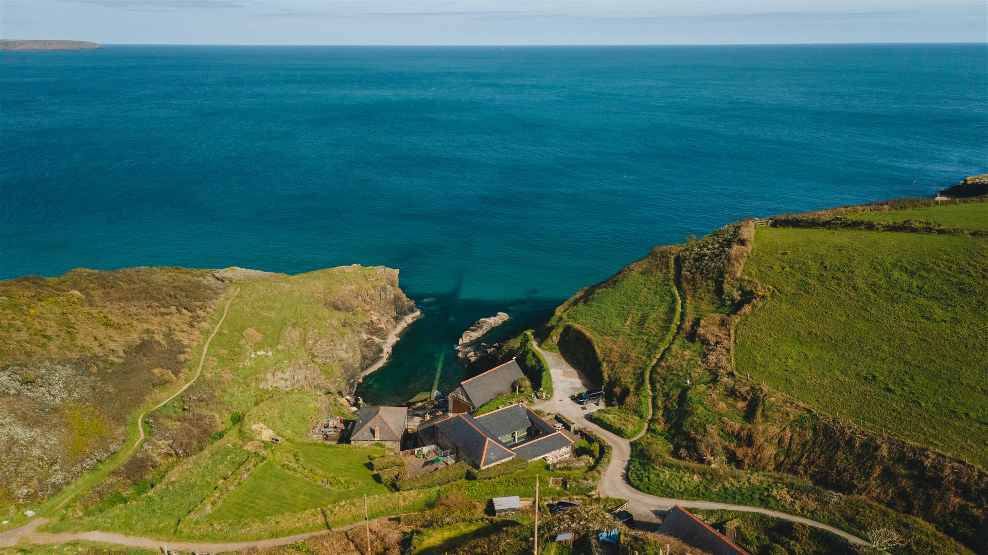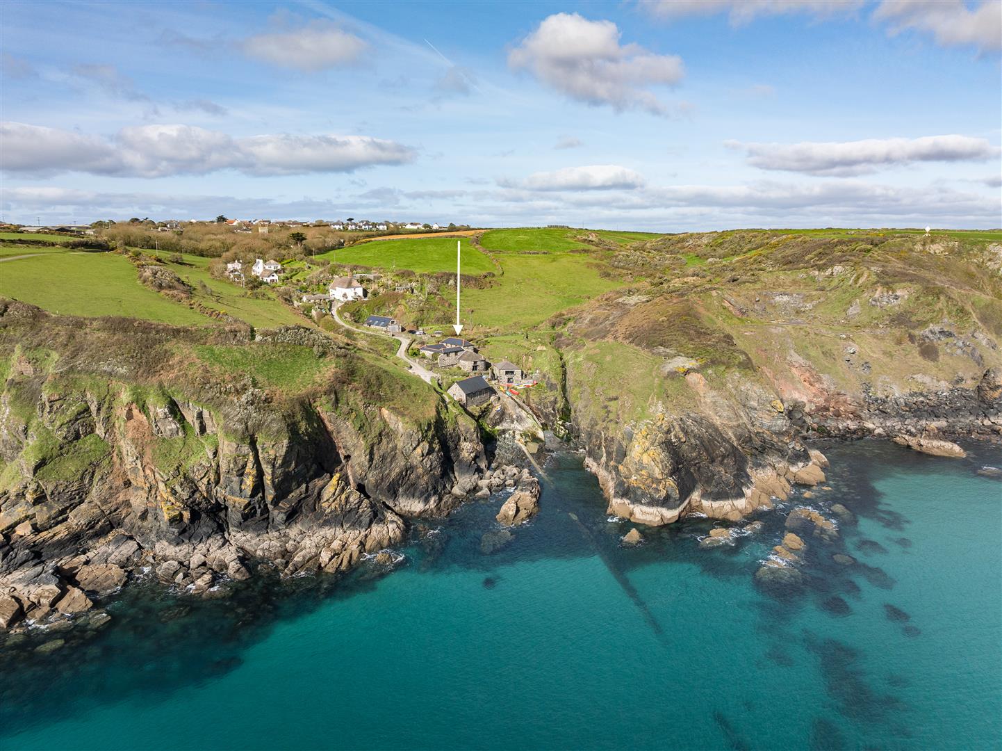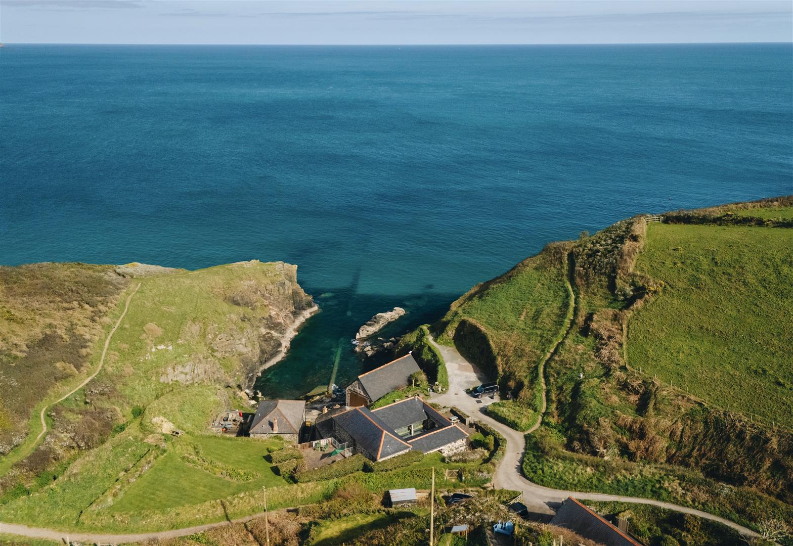 Originally constructed in the 19th century as a pilchard cellar, this converted coastal building occupies a direct position within Church Cove, a short walk from the shoreline and the South West Coast Path. Its significance lies in the retention of its original form and materials, now paired with contemporary glazing that introduces light and transparency while preserving the integrity of the structure.