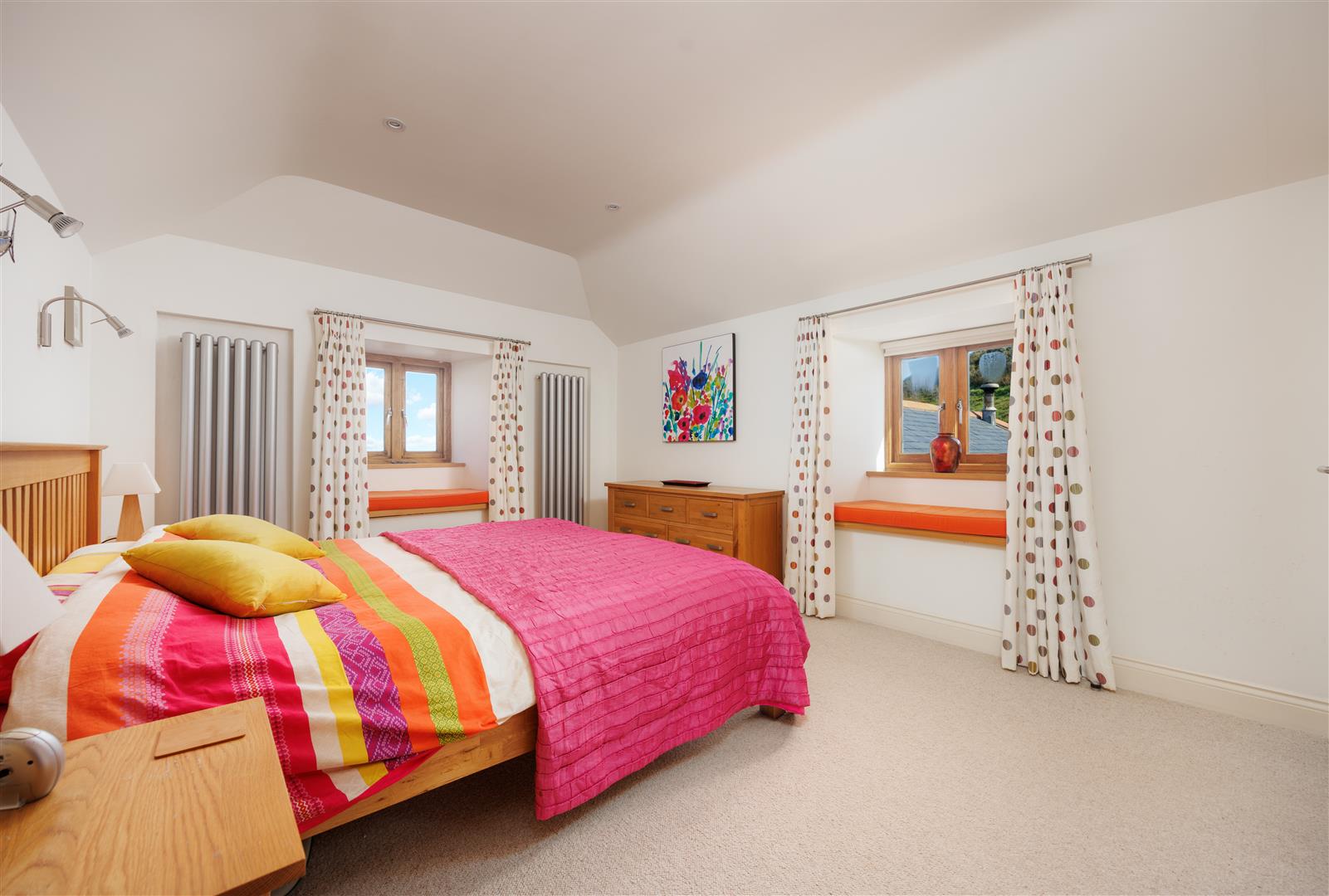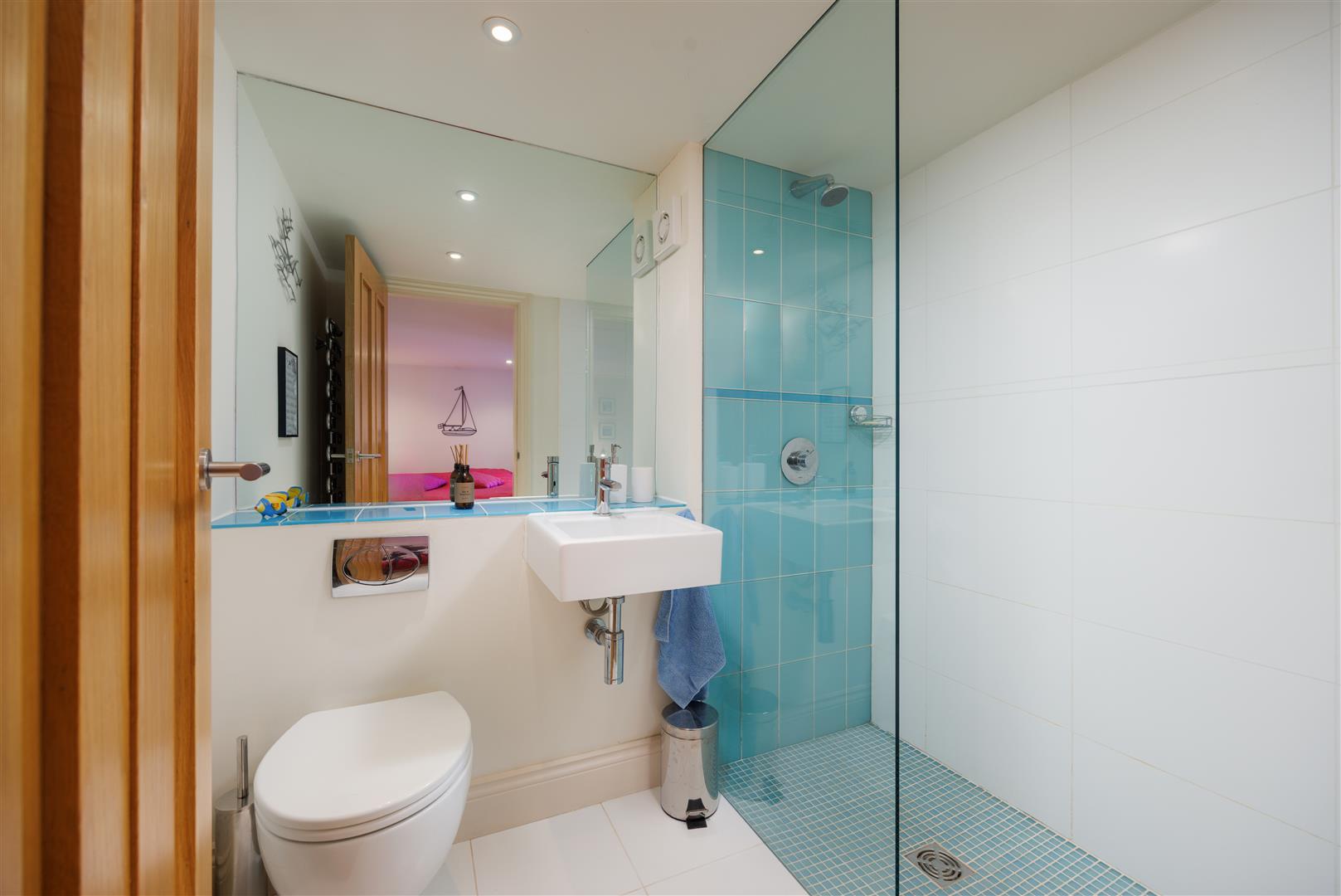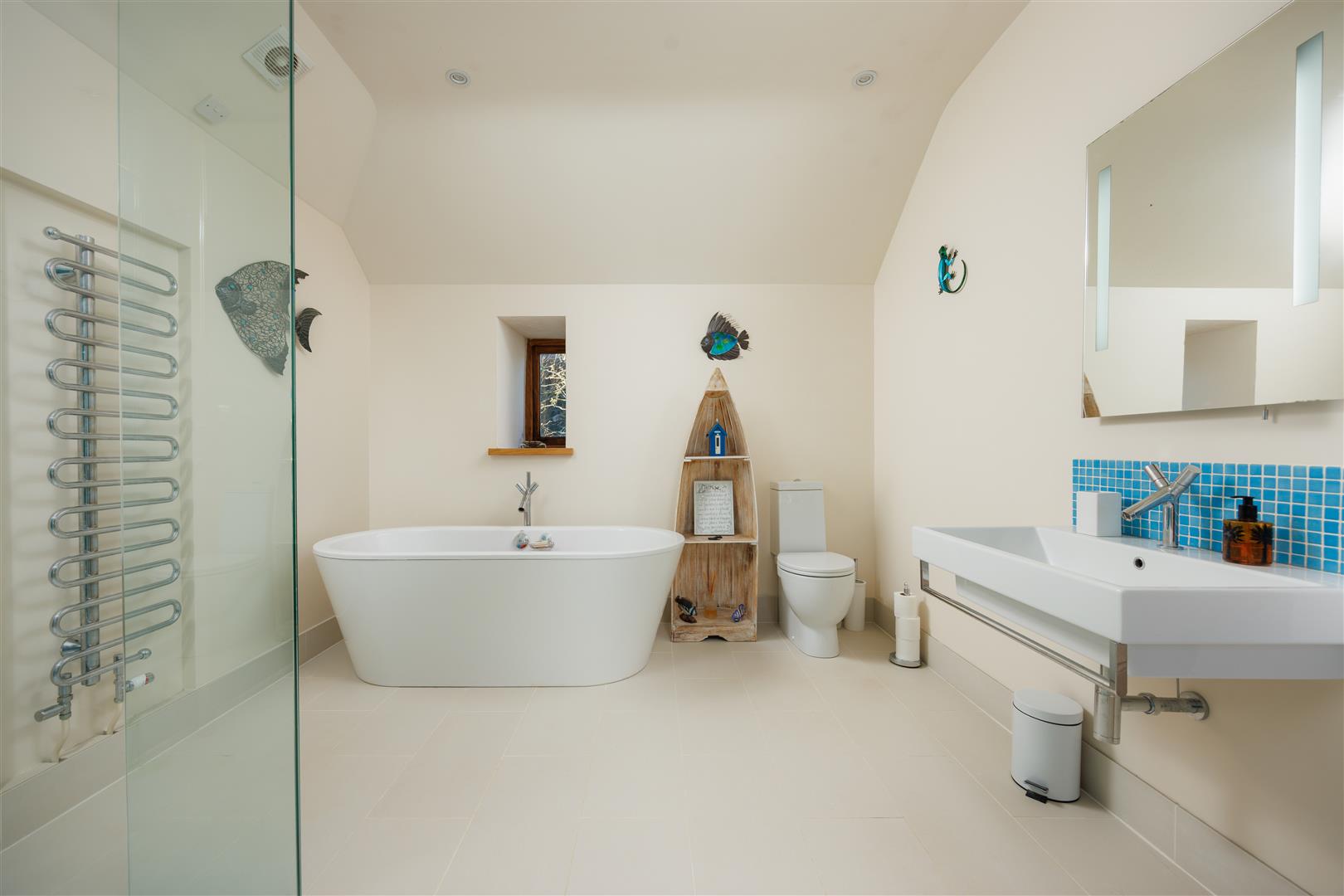 To the rear of the ground floor is a guest bedroom, positioned for privacy, with an adjacent shower room. A separate WC and a utility room provide practical support spaces on this level, allowing for independent guest use if required.